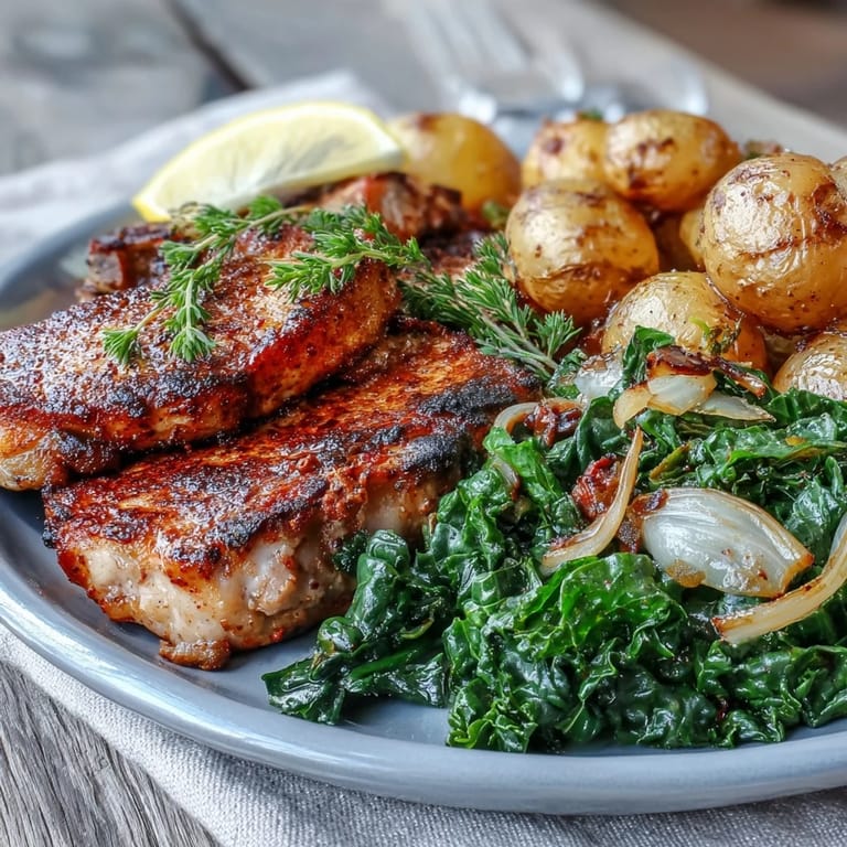 I made this for my neighbor once after she mentioned she was tired of chicken. She stood in my kitchen while the pork rested, breaking off bits of crispy potato from the pan and declaring it better than anything she'd ordered out in months. That's when I knew this wasn't just a recipe I liked, it was one that made people feel taken care of. The way the potatoes get golden and the greens wilt into something silky and lemony, it all just works together like you planned it that way from the start.