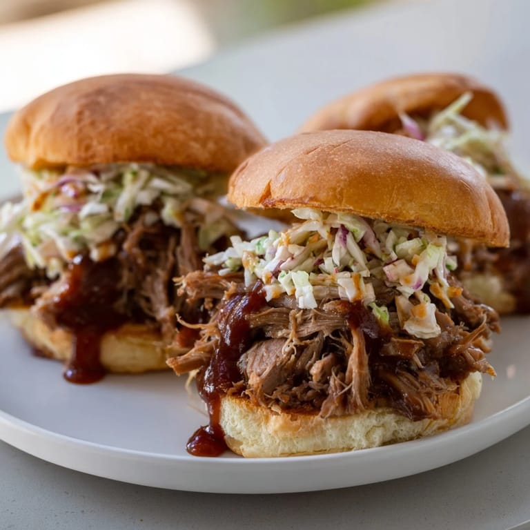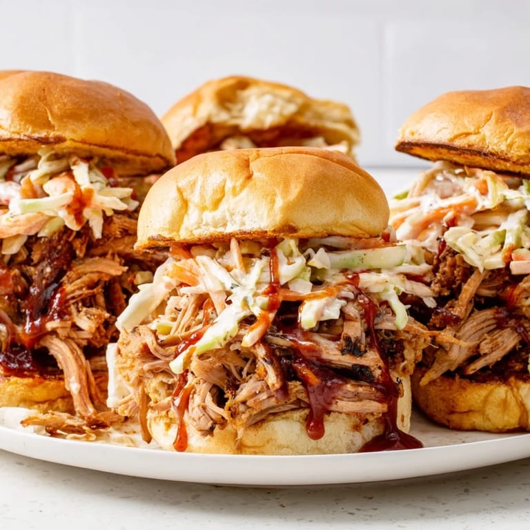 Save Tender, slow-cooked pulled pork infused with tangy apple cider, piled high on soft buns and topped with crunchy slaw for a comforting, crowd-pleasing sandwich.