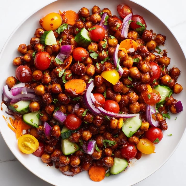 Save I discovered this salad by accident on a sweltering afternoon when I'd promised to bring something to a friend's backyard gathering and realized I had almost nothing in my pantry except a lonely can of chickpeas. Rather than panic, I tossed them in a skillet with some BBQ sauce, and something magical happened—the chickpeas got crispy on the edges while the sauce turned glossy and clingy. When I combined them with whatever vegetables I could scrounge up, the whole thing came together in about twenty minutes, and it became the dish people actually asked me to bring back.