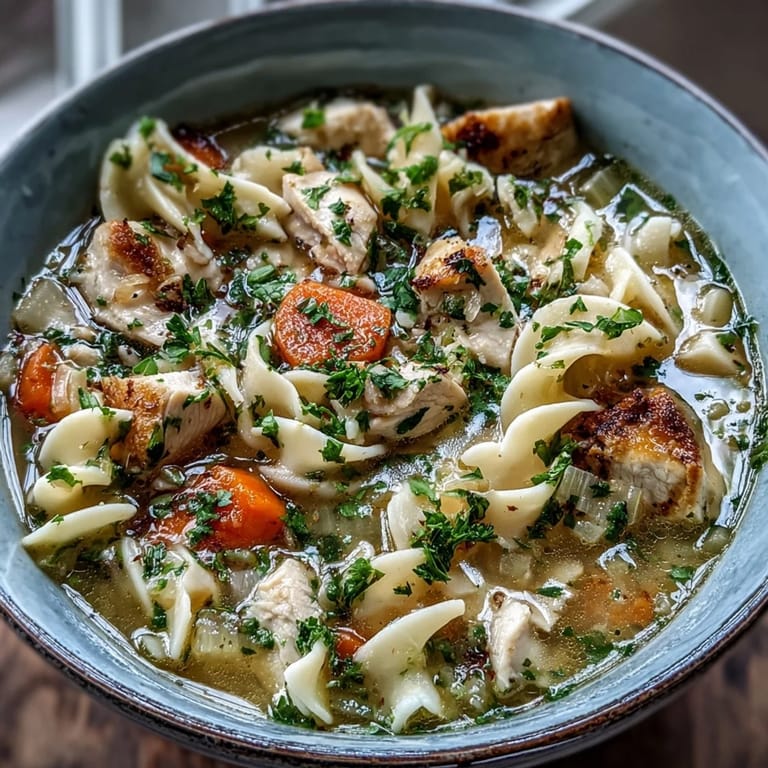 - Ladle the soup into bowls, making sure each one gets a good amount of chicken, vegetables, and noodles, then scatter fresh or dried parsley on top for color and freshness. Serve it immediately with crusty bread alongside.