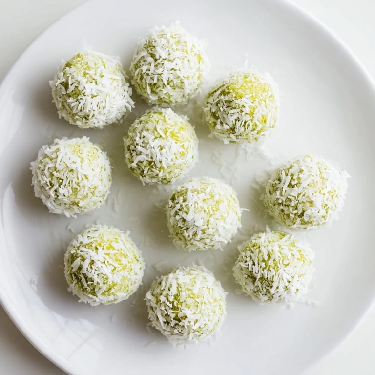 Save Delightful bite-sized treats combining the earthy flavor of matcha with creamy coconut, perfect for a low-carb energy boost.