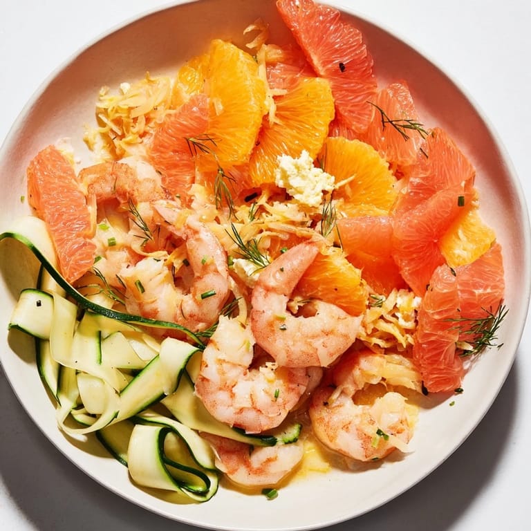 Save The first time I arranged shrimp and citrus on a platter, I wasn't thinking about dinner—I was thinking about my daughter's aquarium project, how she'd spent weeks sketching coral formations. Something clicked when I realized food could tell that same story of color and life. This dish emerged from that moment, a playful translation of the ocean onto a plate, where tender shrimp nestle among bright citrus like fish darting through a reef.