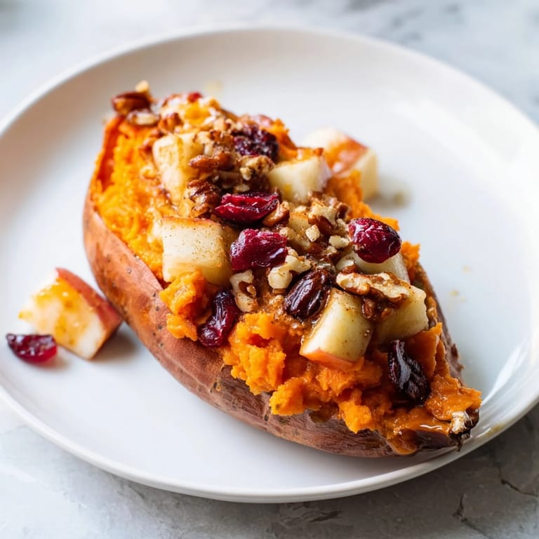 The first time I made these twice-baked sweet potatoes, my family couldn’t get enough of the blend of apple, cranberry, and warm spices.