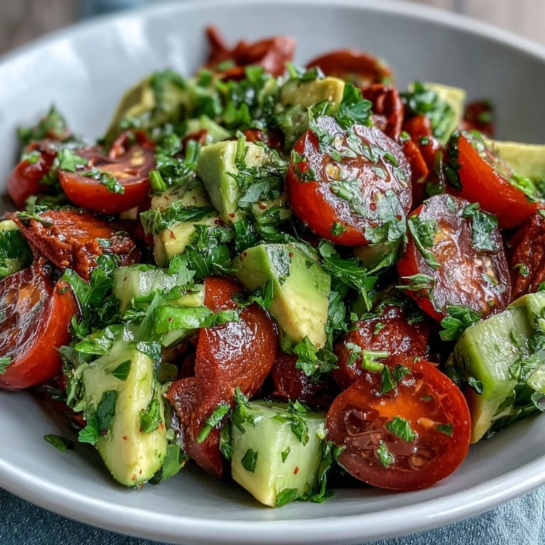 Save I discovered this salad on a sweltering afternoon when my fridge felt like it was mocking me with its sparse contents. A cucumber, some tomatoes that needed eating, and two avocados sitting on the counter became the unexpected hero of lunch that day. The moment I squeezed fresh lemon juice over everything, the kitchen filled with this bright, citrusy smell that made the heat feel less oppressive somehow. Now whenever I make it, I'm transported back to that desperate-turned-delightful moment when simplicity won.