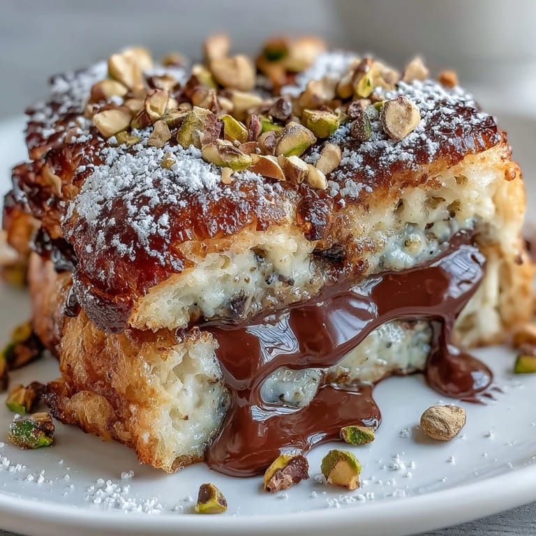 Save The first time this French toast made it to my brunch table, the last croissant was gone before I could even sit down. Someone declared it 'hotel breakfast worthy' and the beautiful mess of pistachios scattered across the counter became the highlight of our Sunday.