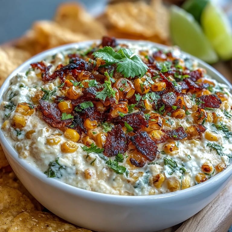 Save There's something magical about the smoky-sweet aroma of charred corn mingling with tangy cotija cheese and bright lime. This Elote Dip transforms the beloved Mexican street corn into a creamy, crowd-pleasing appetizer that's perfect for any gathering. Whether you're hosting a Cinco de Mayo fiesta or simply craving bold, vibrant flavors, this dip delivers all the irresistible taste of elote in an easy-to-share format. Golden corn kernels are sautéed until beautifully caramelized, then folded into a luscious blend of mayonnaise, sour cream, and warming spices. The result? A dip that's creamy, tangy, slightly spicy, and utterly addictive when scooped up with crispy tortilla chips.