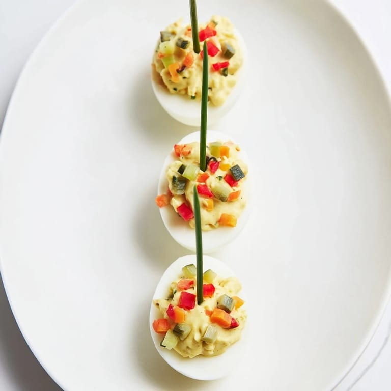 For extra color , use smoked paprika or turmeric in the filling. Swap mayonnaise for Greek yogurt for a lighter version. Decorate with edible gold flakes or pomegranate seeds for added flair.