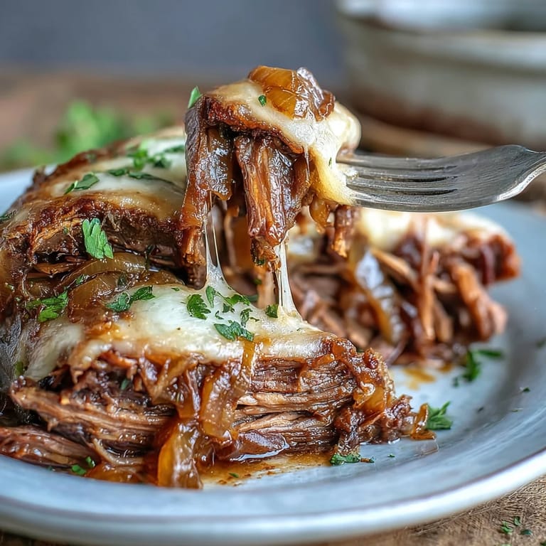 Save The smell hit me before I even opened the door—wine, beef, and onions so sweet they could have been dessert. My neighbor had been slow-cooking her grandmother's pot roast all day, and when she brought over a plate that evening, I understood why people guard family recipes. The Gruyere on top was still bubbling, the meat fell apart with a fork, and I knew I had to figure out how to make it myself.