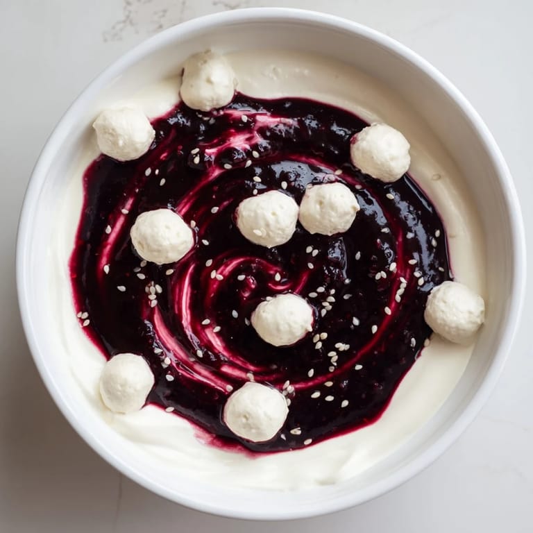 Save I discovered this dessert on a quiet evening when I had exactly three things in my fridge: Greek yogurt, a jar of dark berry jam I'd been saving, and some crumbly goat cheese that needed using up. Instead of discarding them, I layered them out of pure curiosity, swirled the jam just to see what would happen, and suddenly my bowl looked like something from a planetarium. My guests that night didn't just eat it—they paused, took photos, and asked me to make it again before they'd even tasted it.