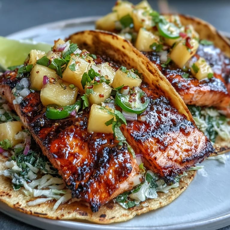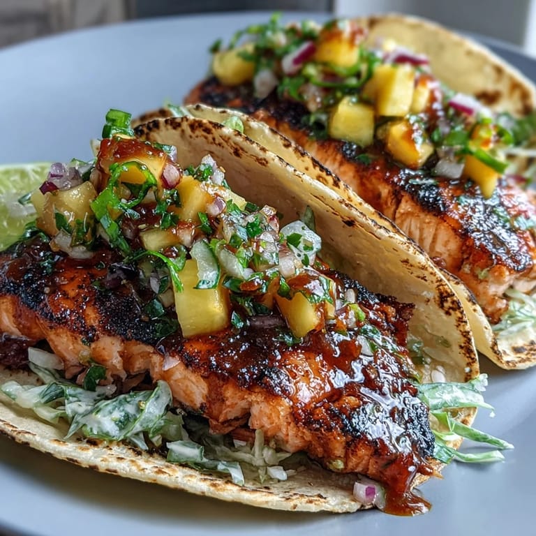 Save The first time I grilled salmon for tacos, I was drawn in by the sizzle and aroma dancing on the air as the fillets hit the hot grill. Summer evenings seem to demand something zesty, and the promise of a bright mango salsa was too good to ignore. I remember being surprised at how quickly the salmon cooked, anxious to avoid overdoing it. Working beside an open window, I let the citrusy scent of lime drift out onto the patio. These tacos have since become my go-to when I want something colorful and fun for friends.