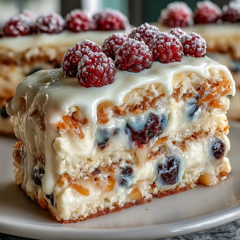 Save There's something about watching someone's eyes close for a moment as they taste a slice of this cake that makes the whole process feel worthwhile. You can see them detecting the bright lemon, then the burst of blueberry, then that creamy tang of the frosting all playing together on their tongue.