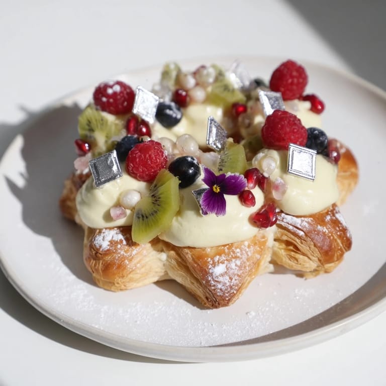 - To assemble Arrange mini puff pastry diamonds on a large platter Pipe or spoon vanilla cream onto some pastries Add white chocolate diamonds and scatter fruit jewels around Garnish with edible flowers mint leaves and a dusting of powdered sugar