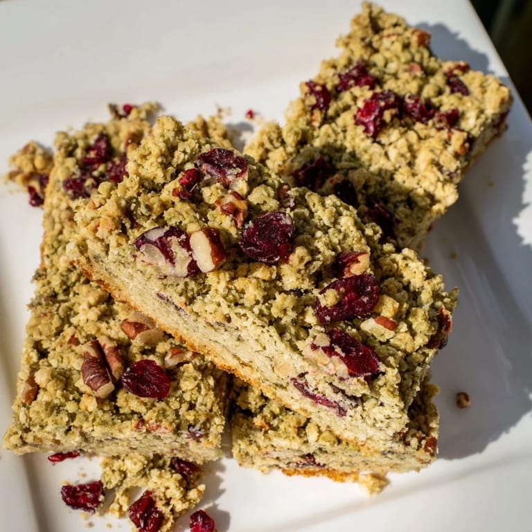 Save Soft, chewy breakfast bars featuring earthy matcha, tart cranberries, and a golden oat crumble—perfect for a wholesome start to your day or an energizing snack.