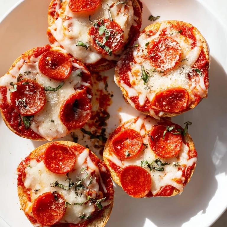 Save I discovered these little treasures when my neighbor dropped off a bag of mini bagels she'd grabbed by mistake, and rather than let them go stale, I raided my freezer for pizza toppings and threw together what would become my most requested after-school snack. The first time I pulled them from the oven, the cheese bubbled over the edges like tiny molten volcanoes, and my kids actually paused their video games to grab one while it was still warm. What started as creative problem-solving turned into something so simple and satisfying that I now make them on autopilot whenever people are stopping by.