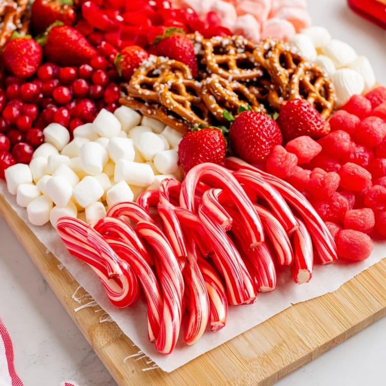 Save Celebrate any holiday or special occasion with a vibrant Sweet Board that brings together an eye-catching array of red and white candies and treats. This festive board is designed to delight guests with visually striking candy stripes and colorful sweet bites, making it a centerpiece that’s both playful and elegant. Perfect for sharing with friends and family, this dessert board comes together quickly and requires no cooking, just a bit of thoughtful arranging to create a festive feast for the eyes and the palate.
