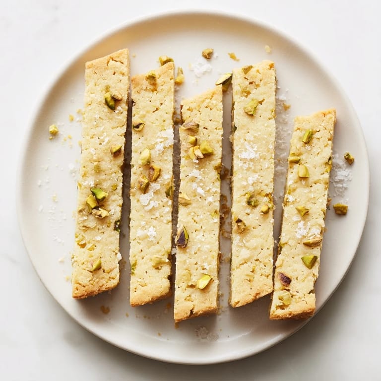 Save A buttery, tender shortbread cookie studded with roasted pistachios and topped with flaky sea salt. Perfect for make-ahead baking and elegant snacking.