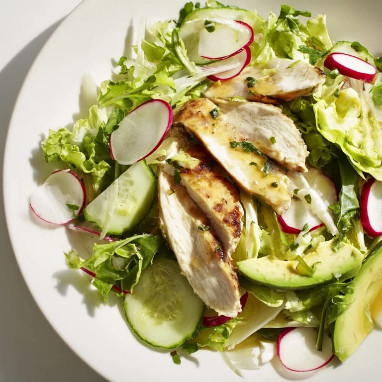 Save Last April, after a long gray winter of comfort food and zero energy, I stood in my kitchen staring at a bag of mixed greens and two chicken breasts. The sun was finally pouring through the window and my body was practically screaming for something fresh, something alive. I threw together this salad without measuring anything, just following instinct and that first crisp bite changed my whole afternoon. Now I make it whenever I need to hit the reset button on my eating habits.
