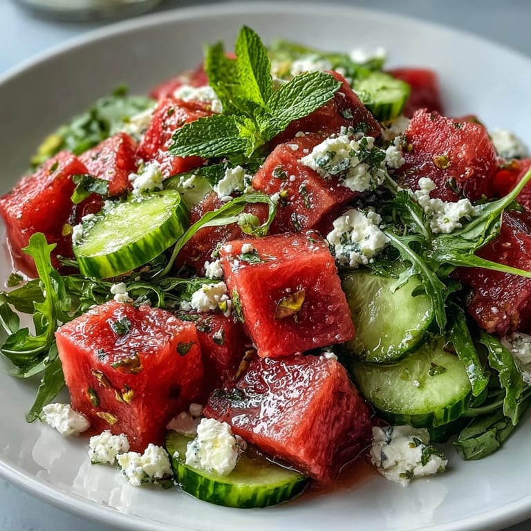 I remember serving this at an impromptu backyard dinner when conversation was interrupted only by compliments and the occasional crunch of pistachios. The salad became a centerpiece, not just for its color, but for how quickly it disappeared from the bowl. We laughed about the messy watermelon juice running down chins and how the mint made everything taste like a garden, even in the city. That day, I learned the salad’s real magic was how it sparked connection and eased everyone into summertime.